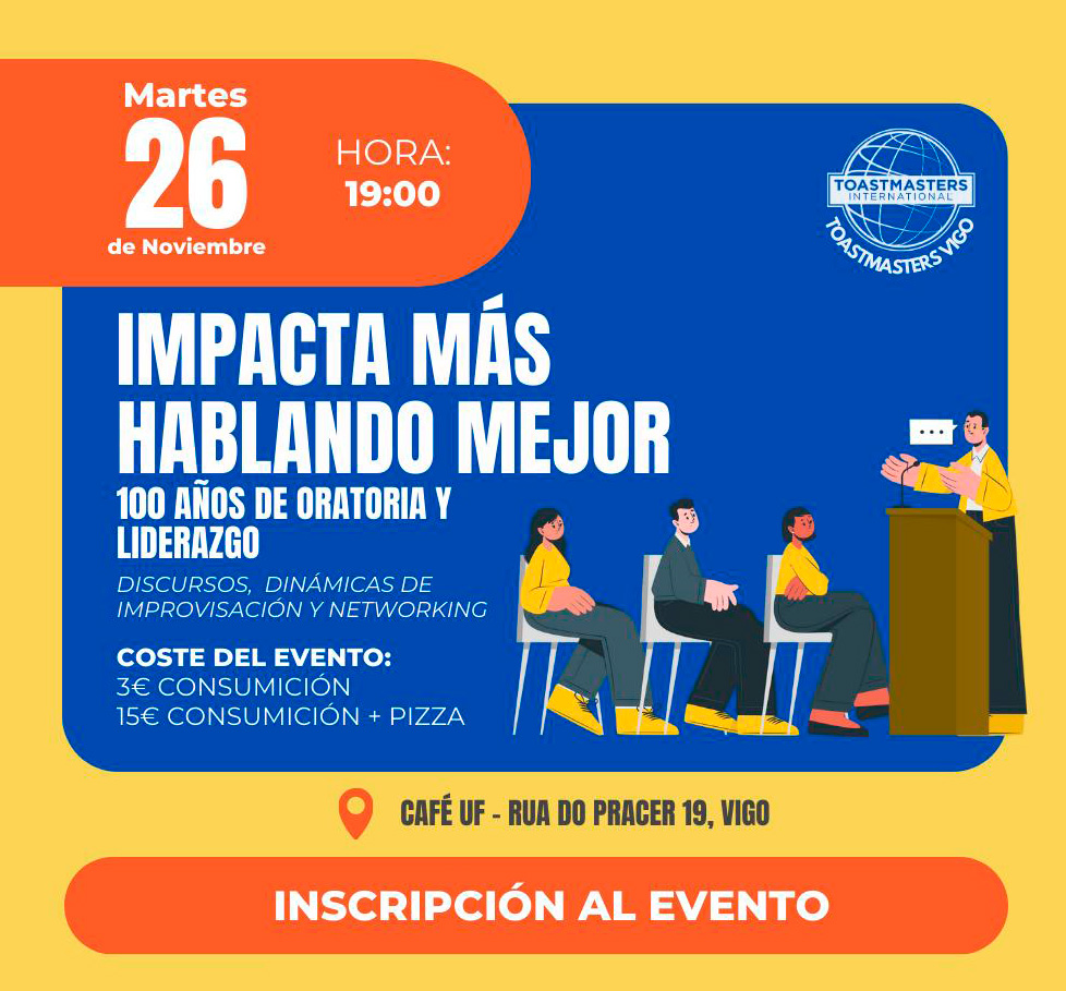 El Club TOASTMASTERS Vigo es una comunidad de personas proactivas que buscamos mejorar nuestras capacidades de oratoria y liderazgo en un ambiente constructivo y muy divertido.